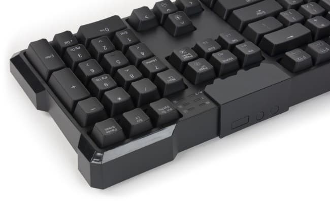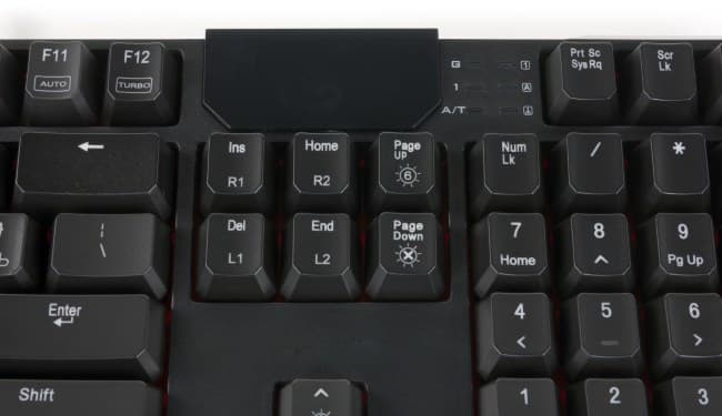 Индикаторы в ней выведены на глянцевую панель рядом с логотипом, а блок Print Screen выровнен над курсорными клавишами.