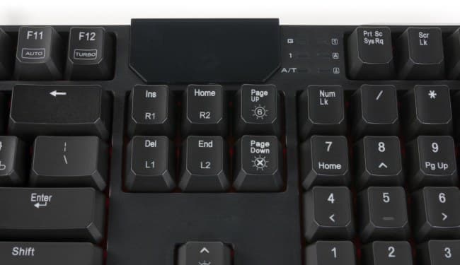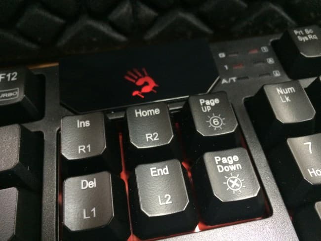 Помимо одноэтажного пробела, неудобным решением является сдвинутый блок Print Screen. В других клавиатурах он обычно располагается напротив клавиш курсора. В Bloody B540 он был вытеснен глянцевой панелькой с логотипом, причем занимает она лишь малую часть всей площади. Ее вполне можно было бы сместить в угол.