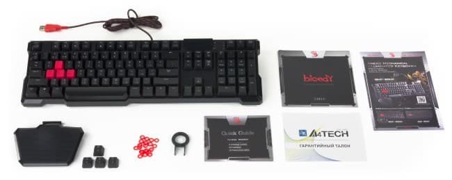 Частенько помехой для использования механических переключателей является их громкая работа. A4Tech эффективно решает эту проблему простым способом. В комплекте с клавиатурой поставляется примерно два десятка резиновых колечек-демпферов, которые надеваются на штырьки клавиш. Таким образом можно легко покрыть все часто используемые в играх кнопки. Установка демпферов снижает громкость механических клавиш до громкости мембранных и немного уменьшает ход. Отметим, что нельзя установить демпферы на пробел, поскольку он является несъемным.