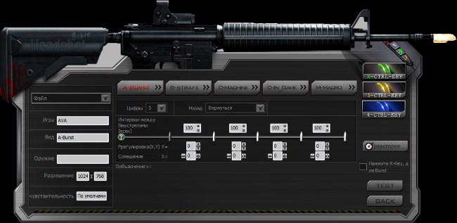 Итак, с платной функциональностью Bloody мы разобрались. Работает она таким же образом, кстати, и с другими мышками производителя. Теперь расскажем о быстром переключении настроек оружия. Эта настройка выражается в количестве кликов (выстрелов), которое происходит за одно нажатие левой кнопки. Боковой ползунок переключает это значение между «1» и «n» (по умолчанию 2). Кнопки под колесиком включают тройное и четырехкратное нажатие.