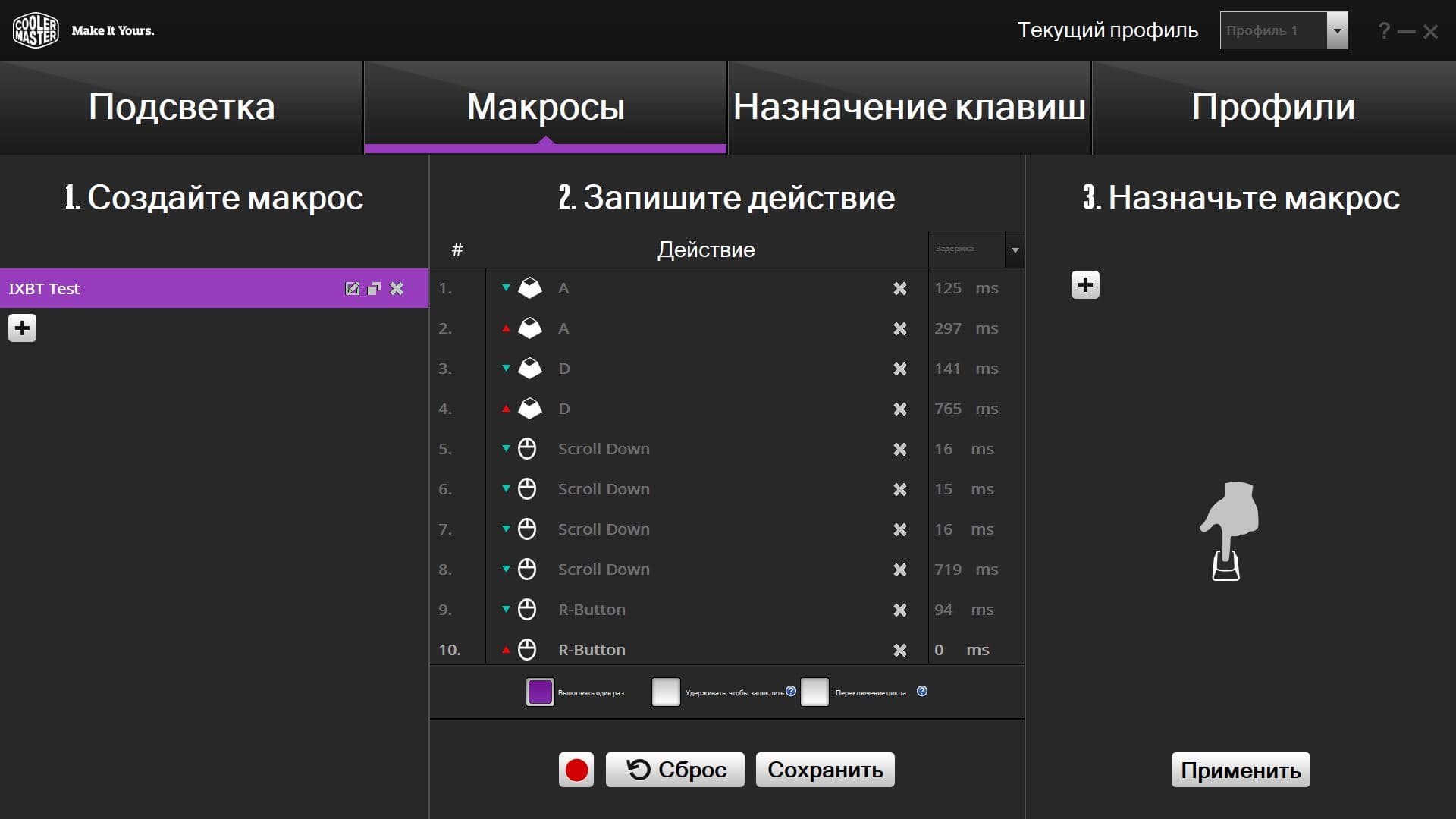 На втором экране расположился удобный редактор макросов.