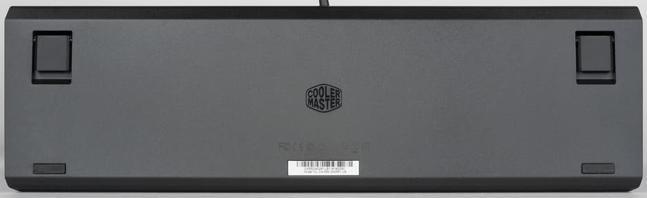 На обратной стороне, в нижней части, расположены две резиновые ножки, предотвращающие скольжение устройства по поверхности. В верхней части расположены складные ножки, предназначенные для изменения угла наклона клавиатуры.