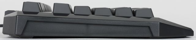 Высота символов латиницы составляет 4 мм, а кириллицы — 3 мм. Первые расположены в левом верхнем углу колпачков, а вторые — в правом нижнем. Светодиод находится примерно посередине, поэтому все символы равномерно подсвечиваются. Форма колпачков цилиндрическая, а кнопка Enter одноэтажная. Ход клавиш составляет 4 мм, а необходимое для срабатывания усилие соответствует величине в 60 сН.
