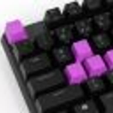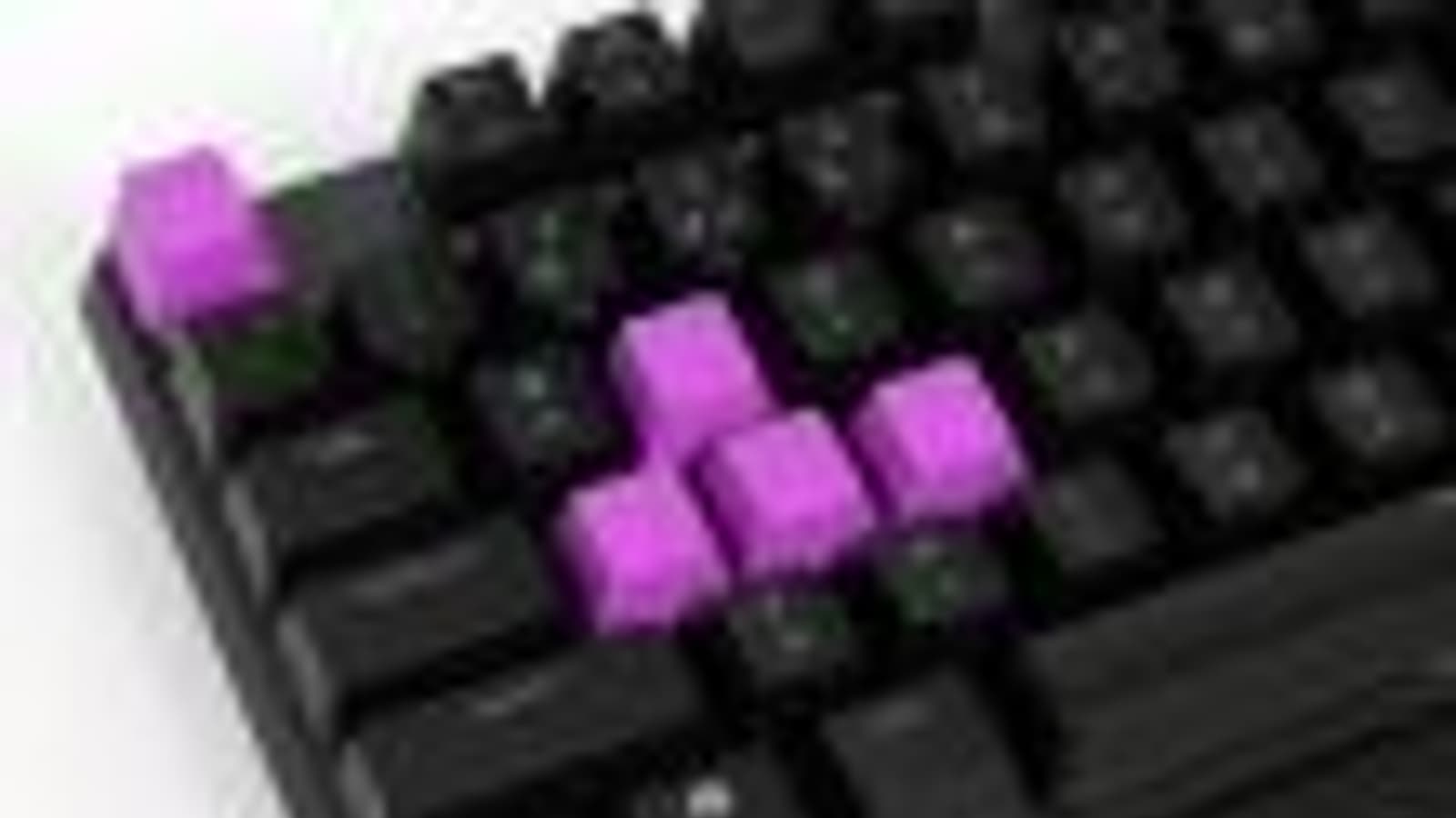 Входящие в комплект поставки девять сменных колпачков отличаются от штатных не только фирменным фиолетовым цветом, они изготовлены из пластика полибутилентерефталат (PBT) с двойным литьём, для долговечности, тогда как все остальные клавиши выполнены из пластика акрилонитрилбутадиенстирол (ABS). Окрашены колпачки в массе, так что краска не облезет со временем. Символы кириллицы на них не нанесены. Зато при установке фиолетовых колпачков внешний вид клавиатуры становится оригинальным и стильным, за счёт ярких цветовых пятен на чёрном поле.