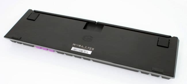 На днище клавиатуры в углах есть два резиновых валика для предотвращения скольжения устройства по поверхности стола. В двух других углах на днище расположены откидные ножки, которые позволяют изменить угол наклона клавиатуры относительно стола на величину около 20 градусов. Устойчивости на поверхности стола способствует и масса клавиатуры, слегка превышающая один килограмм.