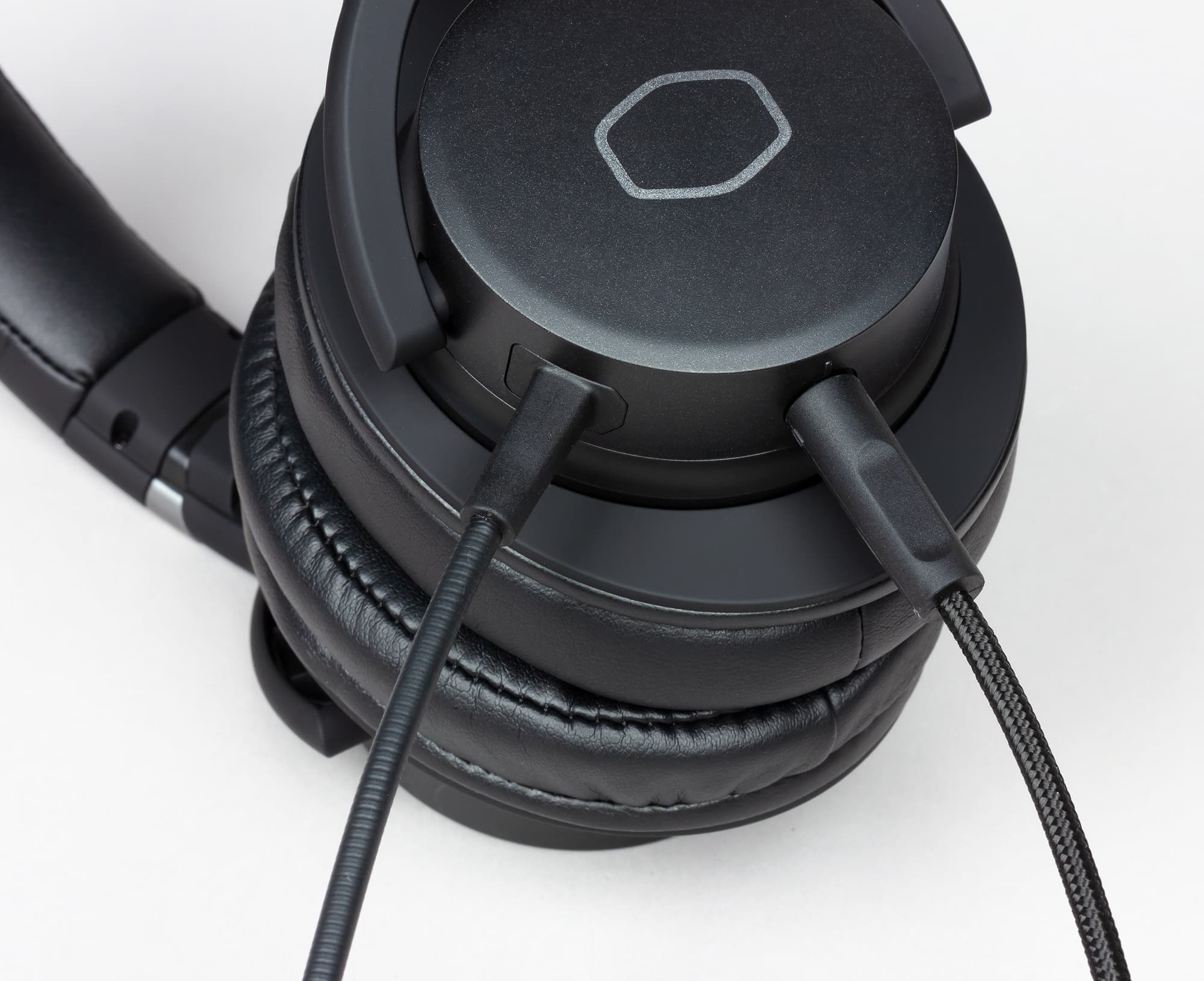 На нижней грани левой чашки находятся разъёмы для микрофона и аудиокабеля, снабжённые специфической системой крепления. Для подключения аудиокабеля необходимо совместить выступы на штекере с прорезями по краям крепления, вставить штекер и повернуть его на 90 градусов, заблокировав в корпусе чашки. Благодаря подобной конструкции можно не опасаться внезапных непреднамеренных извлечений кабеля из разъёма. Корпус штекера и пазы в чашке подогнаны друг к другу достаточно плотно, что позволяет распределить нагрузку при рывках, предотвращая повреждение разъёма.