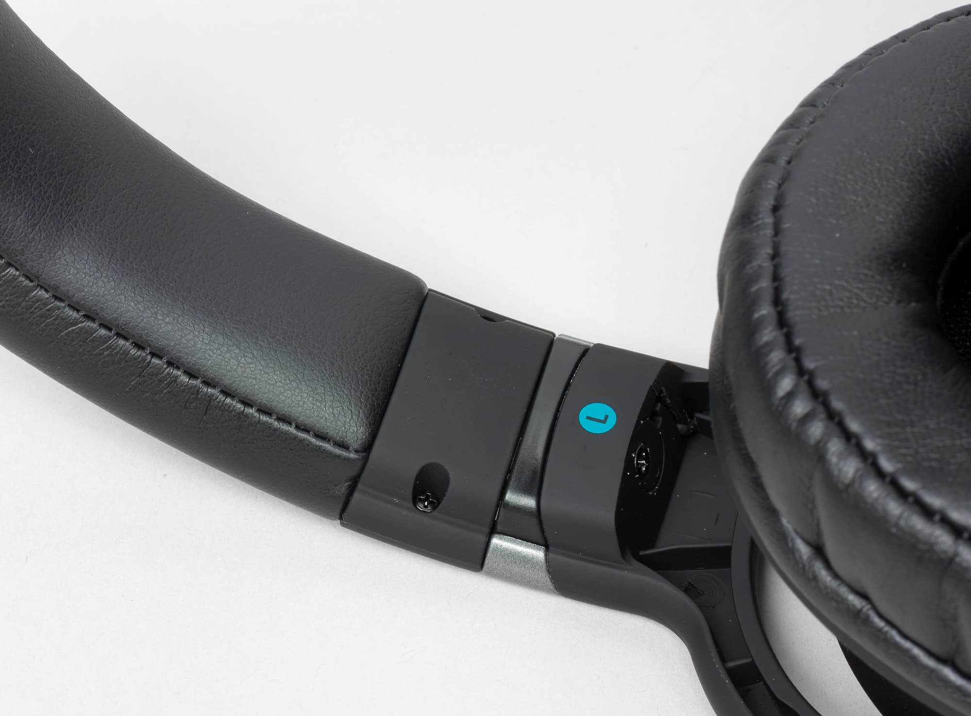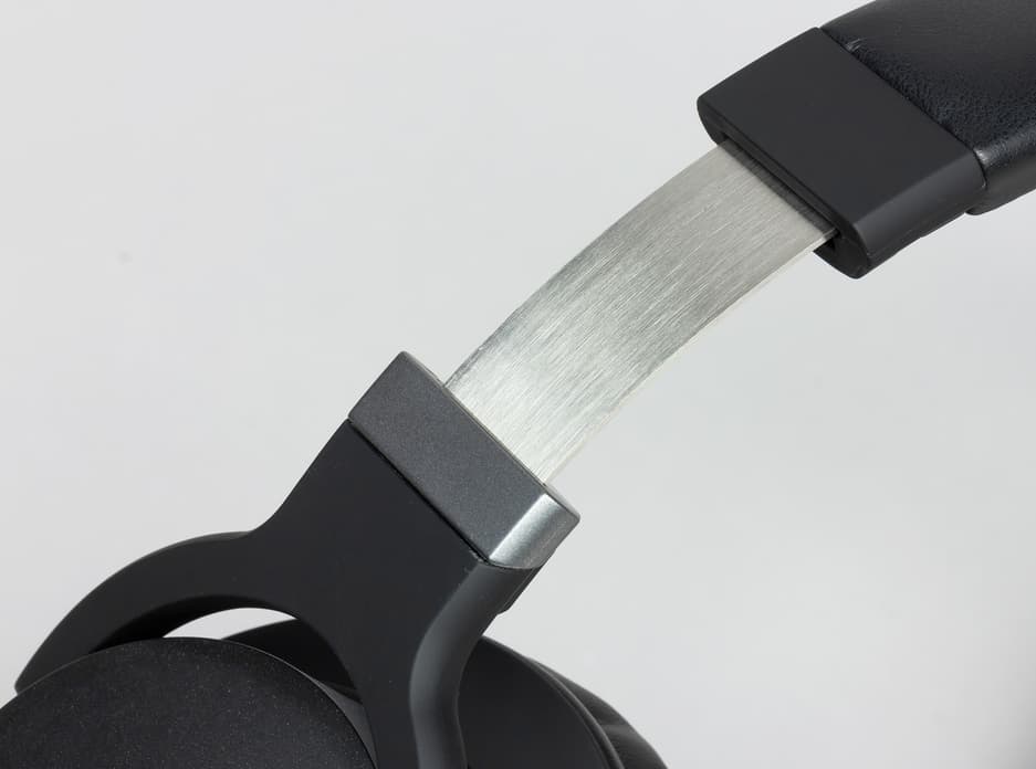 Раздвижная конструкция оголовья реализована с помощью рельс, прочность и гибкость которых обеспечивает металлическое основание. Оголовье раздвигается с небольшим усилием и аккуратно выраженными ступенями. Качество регулировки позволяет без усилий подстраивать гарнитуру под голову пользователя. Несмотря на лёгкость настройки, оголовье вполне уверенно сохраняет установленную длину, не сбиваясь при многократном снятии гарнитуры с головы.