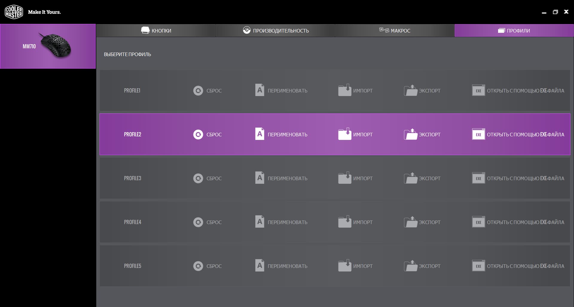 Мышка обладает собственной памятью, в которой помещаются 5 профилей. Так что, если настроить клавиши соответствующим образом, между профилями можно будет переключаться даже без фирменного ПО.