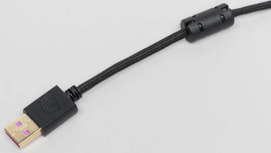Мышка соединяется с компьютером через кабель USB 2.0 длиной 1,8 м. И этот кабель заслуживает отдельного абзаца. Тактильных ощущений через слова не передашь, к сожалению. Кабель у мышки настолько мягкий и послушный, что, подержав его в руках, я пожалел о том, что перешёл на беспроводные манипуляторы. Основная жила проходит внутри тканевого рукава шириной 4 мм и свободно двигается внутри него. Это обеспечивает и мягкость, и защиту. Единственный минус здесь в том, что, скорее всего, через какое-то время на тканевой оплётке появятся зацепы.