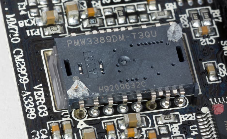 В устройстве установлен сенсор PixArt PMW 3389 c максимальным физическим разрешением 16 000 DPI (и возможностью настройки с шагом в 50 пунктов), максимальным ускорением 50 G и скоростью слежения 400 IPS. Сенсор этот популярнен в игровых мышах верхнего сегмента.