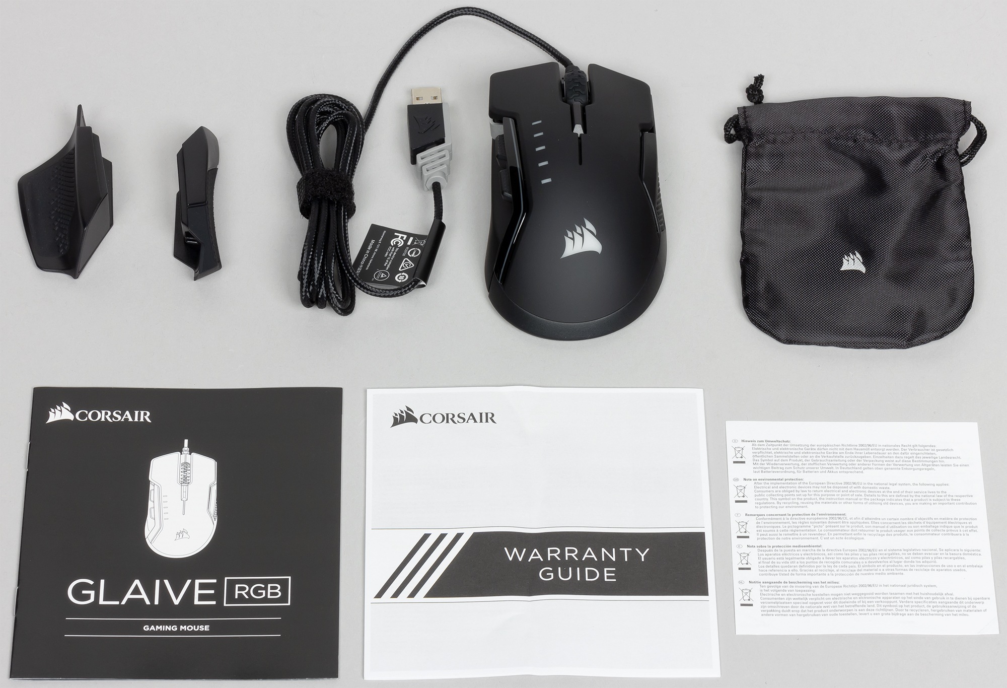 Corsair Glaive RGB — игровая мышь с гибкими настройками. Порадовала возможность поменять панель под большой палец. Странно, что нет возможности регулировать вес устройства, раз уж всё равно сделали съёмные панели.