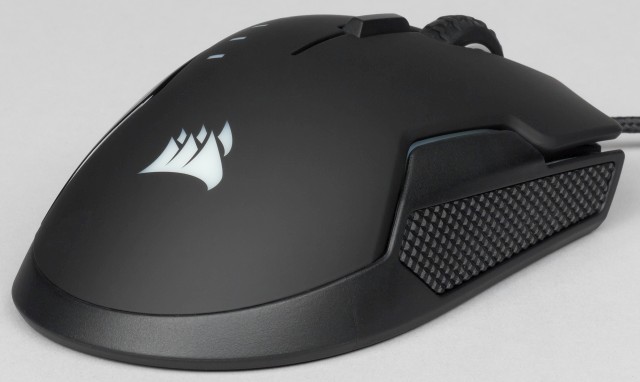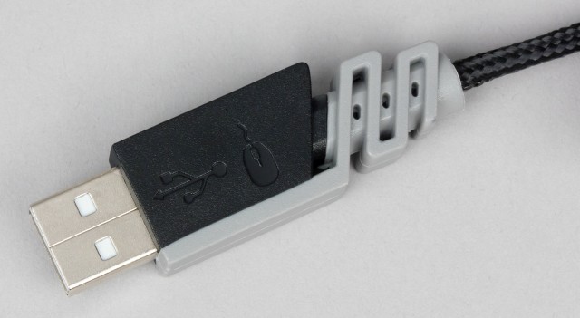 Интерфейсный кабель мыши защищён мягким текстильным покрытием, а штекер серого цвета имеет фирменную форму для периферийных устройств Corsair.