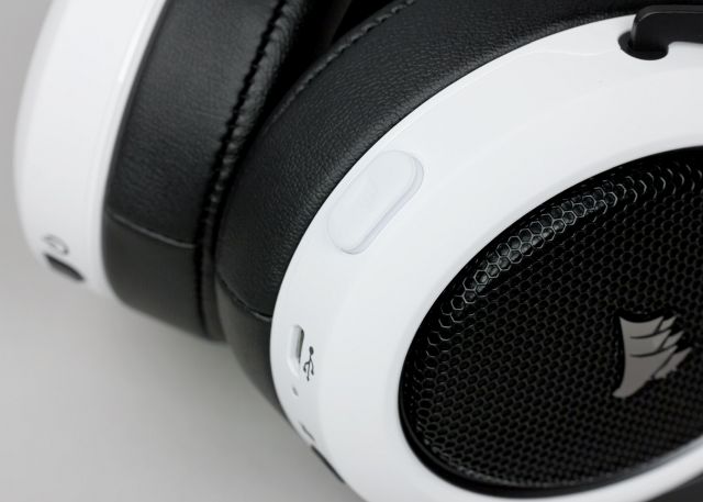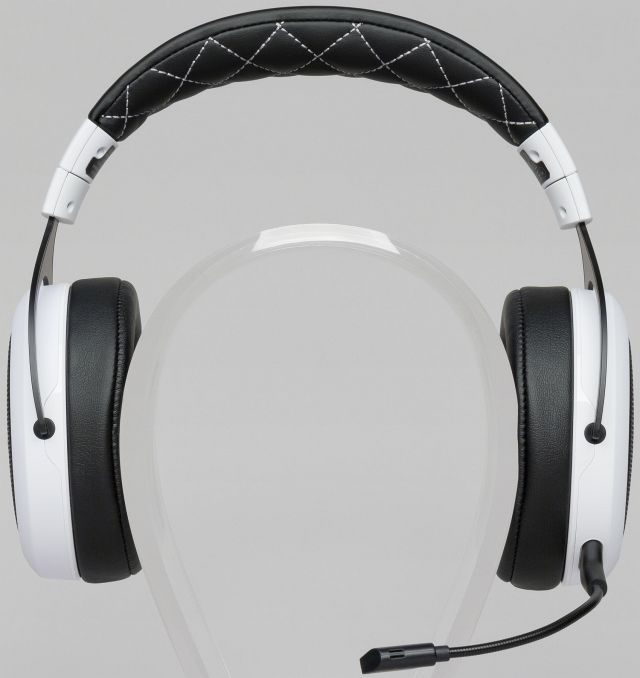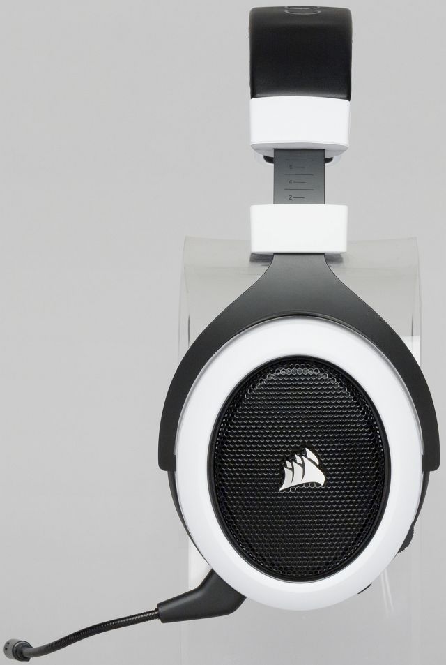 Корпус чашек выполнен из пластика белого цвета, внешняя часть прикрыта металлической сеткой с логотипом Corsair, амбушюры сделаны из мягкой синтетической кожи с наполнителем из пены с эффектом памяти.