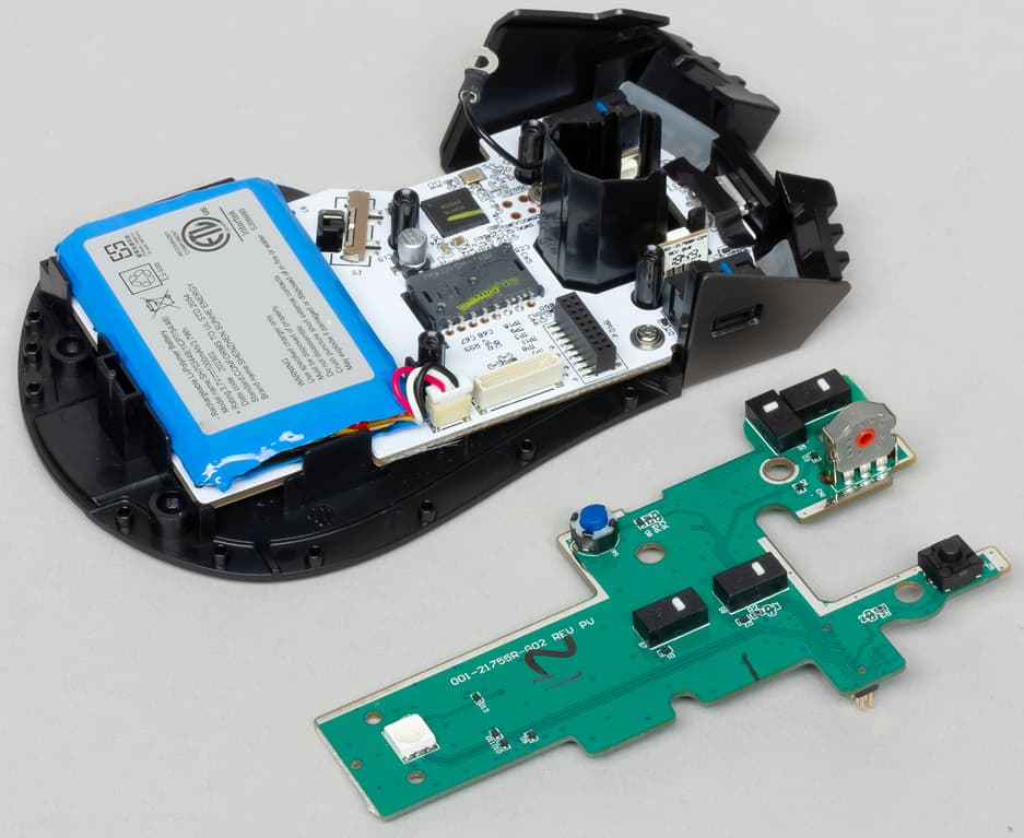 При работе в беспроводном режиме устройство питается от внутреннего аккумулятора ёмкостью 1000 м·Ач. С полностью включенной подсветкой в режиме подключения через ресивер мышка работает 16 часов, с выключенной — 24 часа. При подключении по Bluetooth цифры гораздо больше: до 30 часов работы при стандартном режиме подсветки и до 50 часов работы при выключенной подсветке.