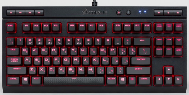 Нельзя не отметить мелкий шрифт для символов кириллицы и одноцветную отключаемую подсветку, что может оказаться критичным для части потенциальных пользователей. Зато у K63 строгий внешний вид, качественная сборка, традиционная для Corsair, игровые механические переключатели Cherry MX Red и, конечно, удобная функциональная утилита Corsair Utility Engine.