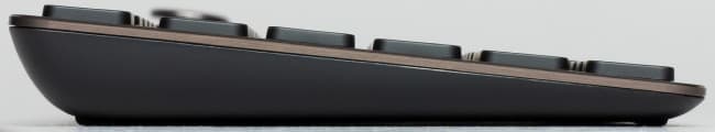 У клавиатуры нет откидных ножек, но корпус сделан под наклоном, поэтому в самом тонком месте высота клавиатуры всего 8 мм, а в самом толстом высота достигает 15 мм или 28 мм с джойстиком.