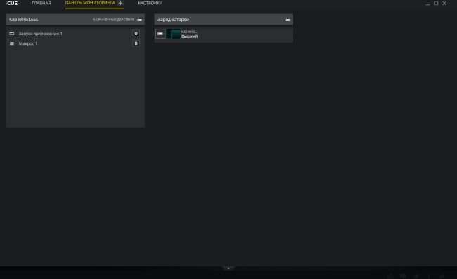 В меню «Панель мониторинга» можно контролировать списки макрсоов и уровень заряда аккумулятора.
