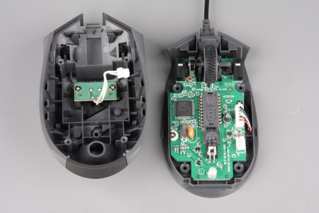 Давайте разберем мышь и заглянем внутрь. Интерфейсный кабель подключен к печатной плате через разъем.