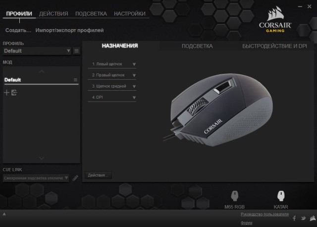 Утилиту CUE мы уже рассматривали в предыдущих обзорах, поэтому сейчас уделим внимание лишь особенностям, напрямую связанным с Corsair Katar.