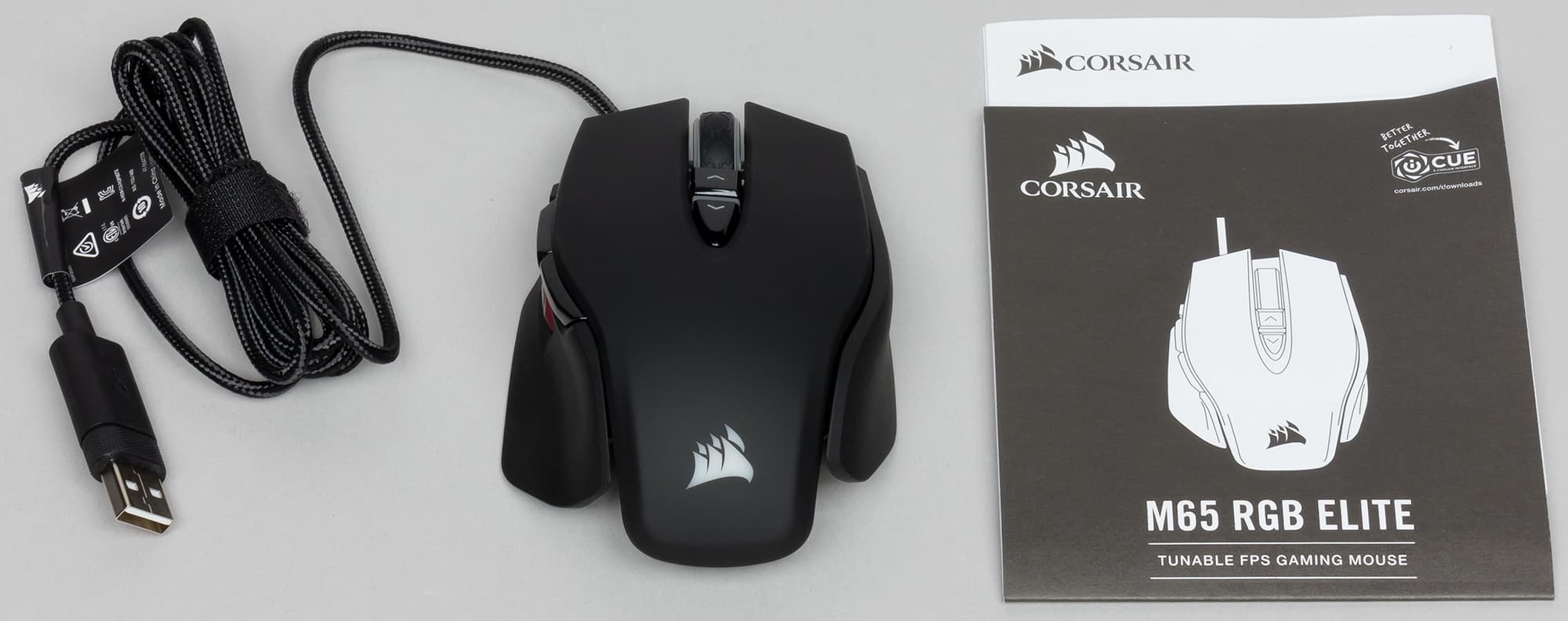 Corsair M65 RGB Elite обладает необычной внешностью, которая работает в плюс удобству использования мышки. Недостатки устройства незначительны, а топовый сенсор с возможностью гибкой настройки, ориентированность на шутеры, выраженная в появлении «снайперской» кнопки, а также возможность регулировать вес и баланс определённо заслуживают внимания любителей жанра FPS.