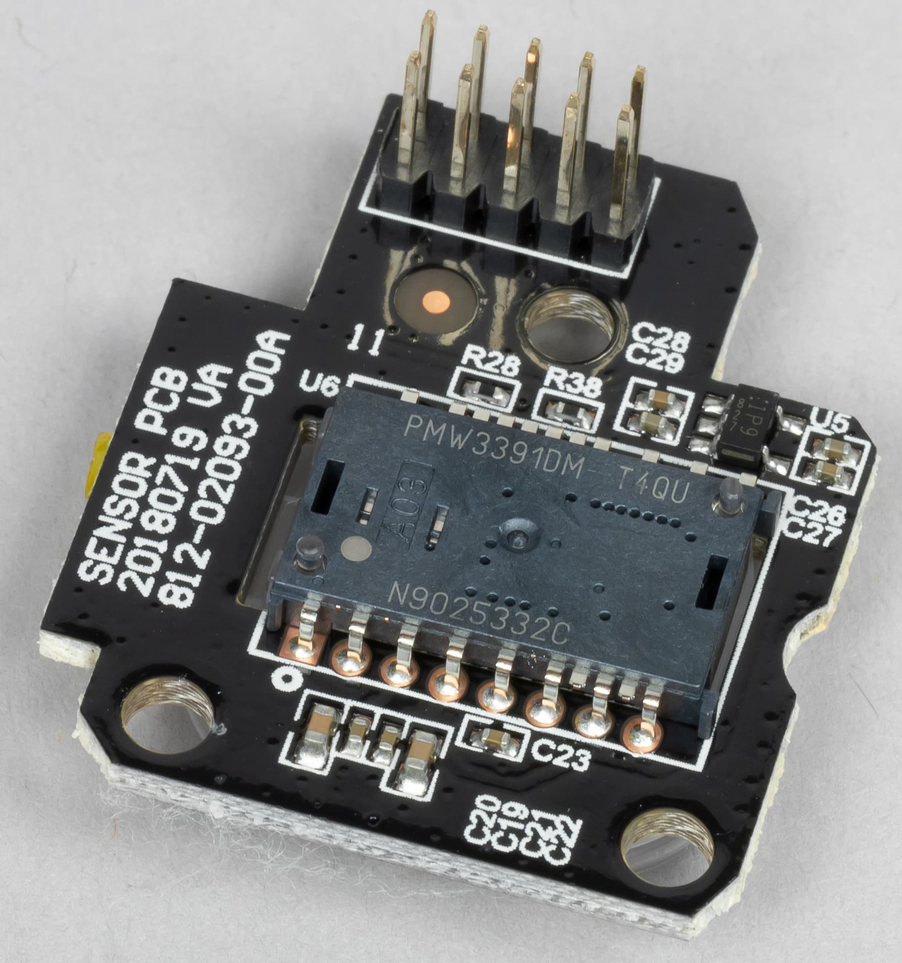Внутри мыши стоит топовый, новый сенсор Pixart PMW 3391 c максимальным физическим разрешением 18 000 CPI и возможным шагом его настройки в 1 пункт. Максимальное ускорение, которое не мешает работе сенсора, — 50 G.