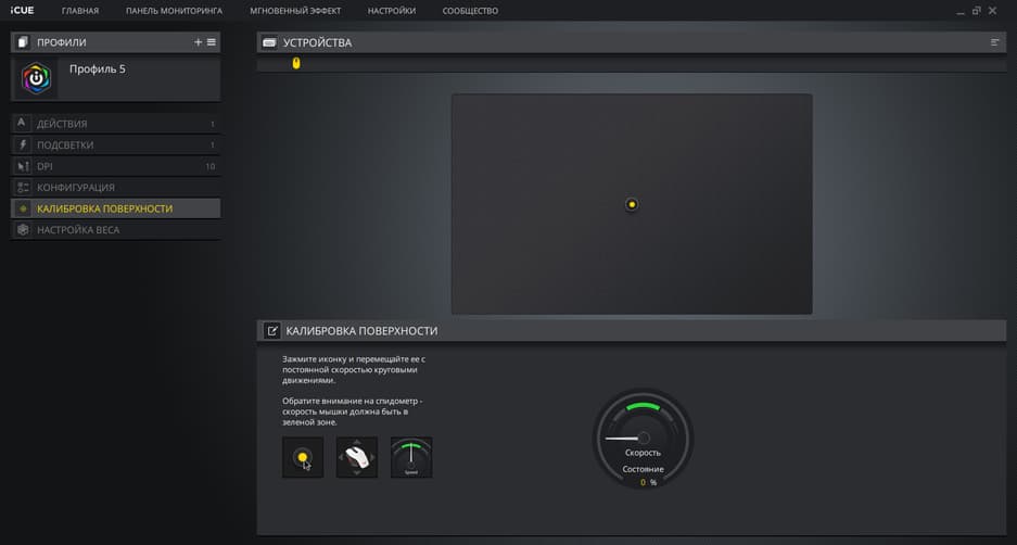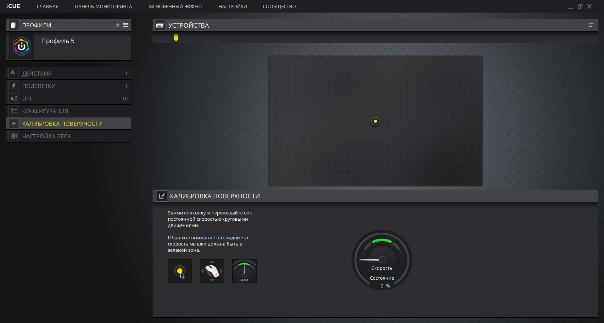 И, наконец, функция калибровки очень помогает, если нужно быстро настроить мышку под нестандартную поверхность.