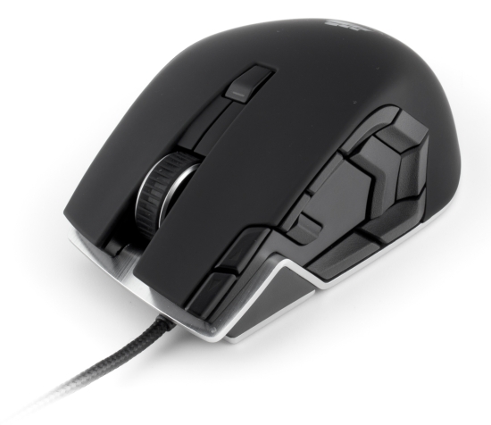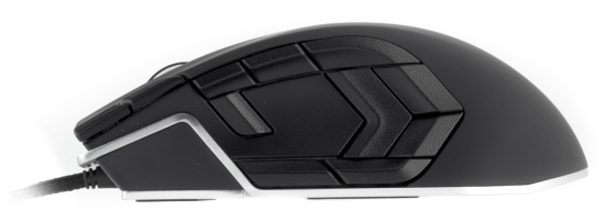 Vengeance M90 также имеет алюминиевую основу, которая, в отличие от M60, состоит из двух частей и закрыта soft-touch-панелью практически полностью. Лишь редко используемый «правый фланг» сделан из уже упомянутого шершавого пластика. Количество программируемых кнопок поражает — целых 15. Две из них предварительно настроены как «Вперед» и «Назад», а третья под ними — как «Sniper». Рядом аккуратно вписан индикатор профилей — шесть миниатюрных светодиодов.
