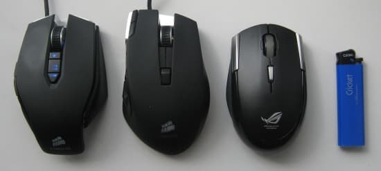 Мышки Vengeance практически одинаковы по размерам. ASUS GX810, протестированная нами ранее, незначительно уступает им по длине.