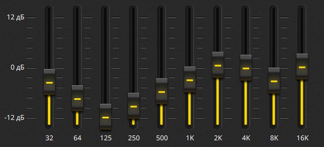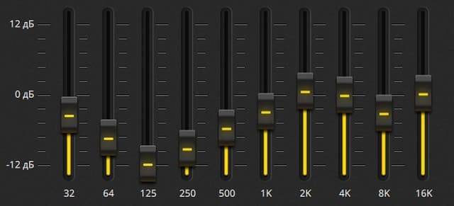 Во вкладке «Эквалайзер» можно выбрать одну из заранее созданных предустановок или сформировать собственный вариант.