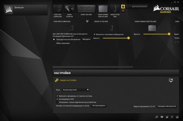 Традиционно для управления и настройки периферийного оборудования Corsair применяется фирменная утилита Corsair Utility Engine (CUE).