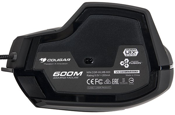 В Cougar 600M установлен сенсор ADNS-9800, расположенный практически в условном центре устройства. В основных кнопках используются переключатели Omron D2FC-F-7N. Работа мыши обеспечивается контроллером LPC11U14F от NXP Semiconductors.