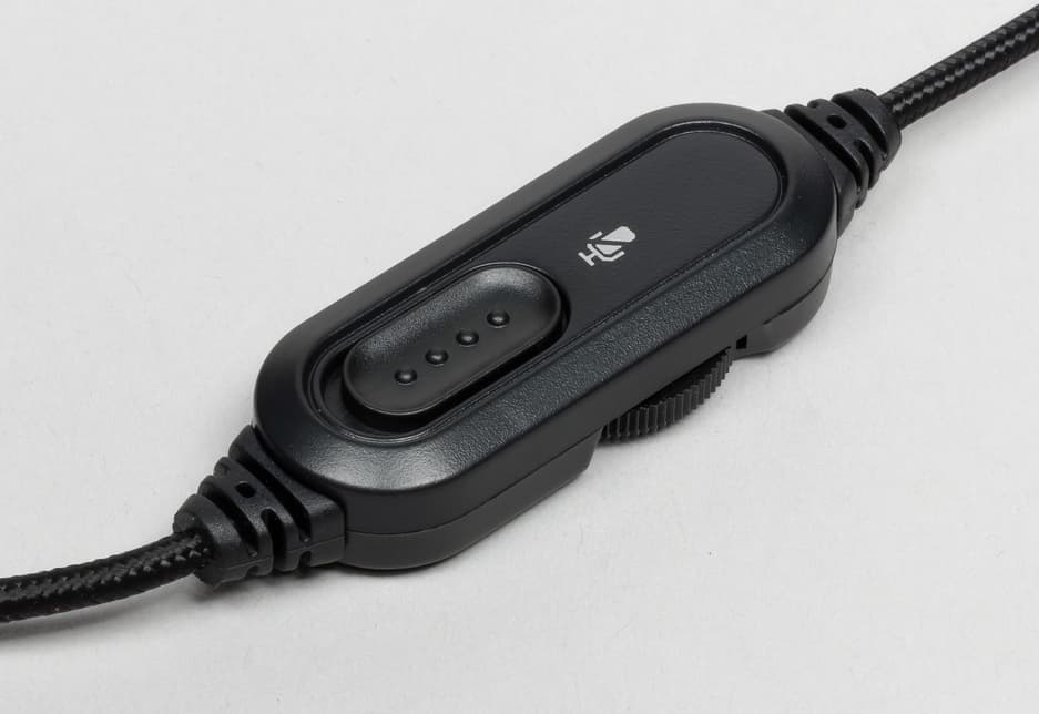 Наушники подключаются при помощи кабеля длиной 1,8 м со стандартным 3,5-миллиметровым штекером. Кабель чёрный, в оплётке. На нём есть небольшой блок управления в пластиковом корпусе, имеющий колёсико регулировки громкости наушников и выключатель для микрофона.