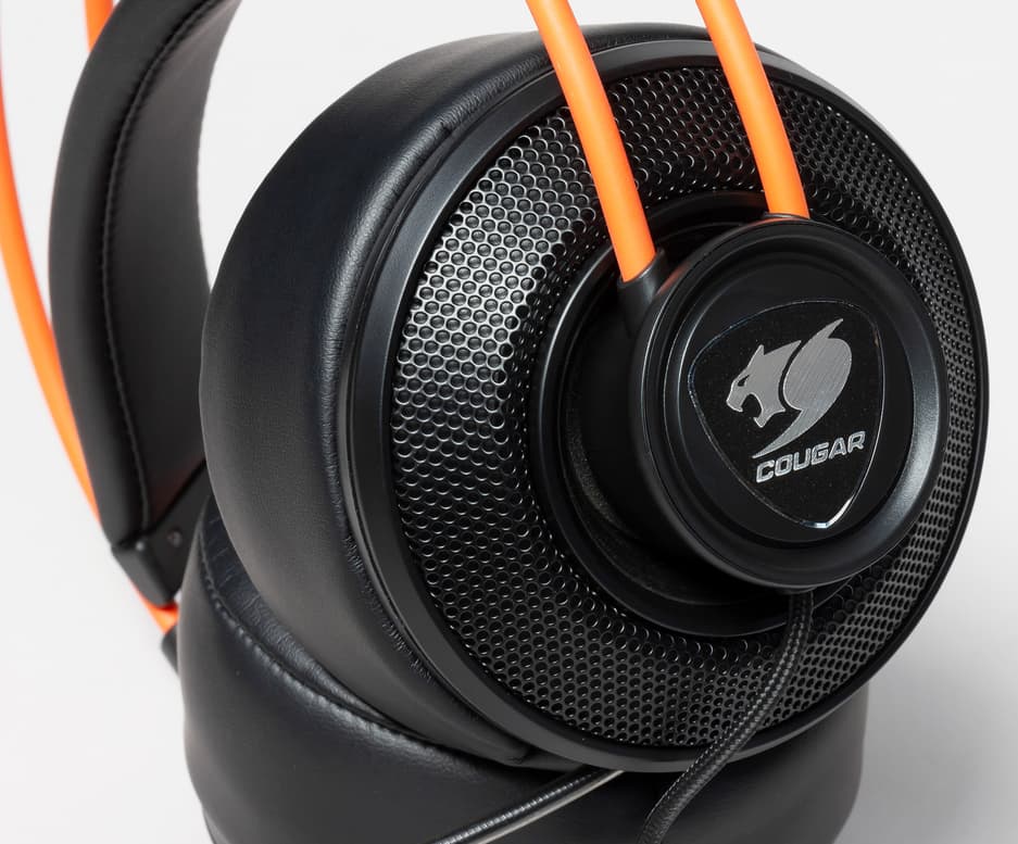 На внешних панелях чашек — множество мелких отверстий. Чашки сделаны из лёгкого металлического сплава и добавляют конструкции прочности, да и выглядят тоже весьма стильно. Крепятся они на шарнире, который позволяет им отклоняться в любую сторону, и это тоже весомый плюс к комфорту использования гарнитуры.