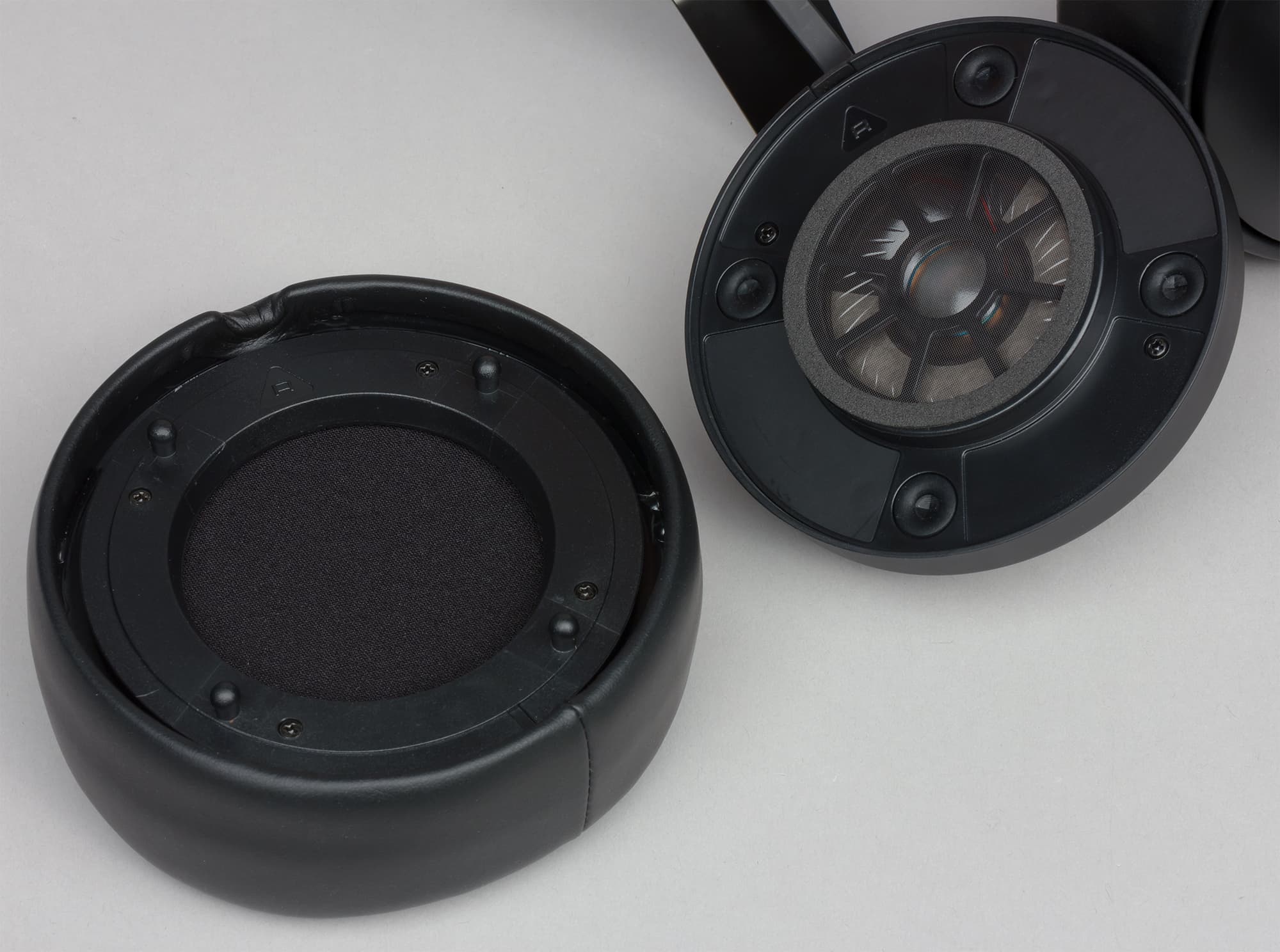 Если вам захочется взять наушники с собой, амбушюры легко сменить на более компактные: достаточно, обхватив их ладонью, потянуть на себя.