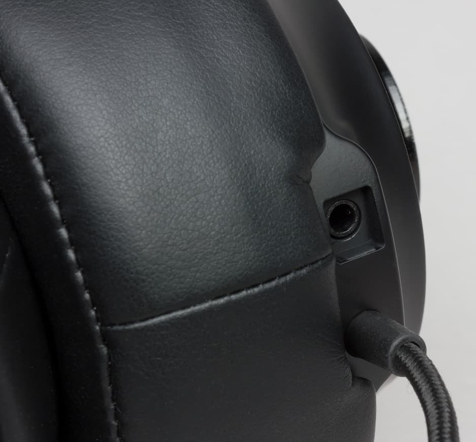 Рядом с выходом кабеля на левой чашке находится мини-джек для подключения комплектного микрофона.