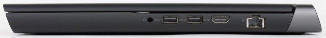 На правом торце корпуса ноутбука есть ещё два порта USB 3.0, видеовыход HDMI, разъём RJ-45 и комбинированный аудиоразъём.