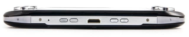 Внизу — Сброс, разъем mini-USB/зарядки, два выхода на наушники и слот карты памяти. Ничего оригинального.