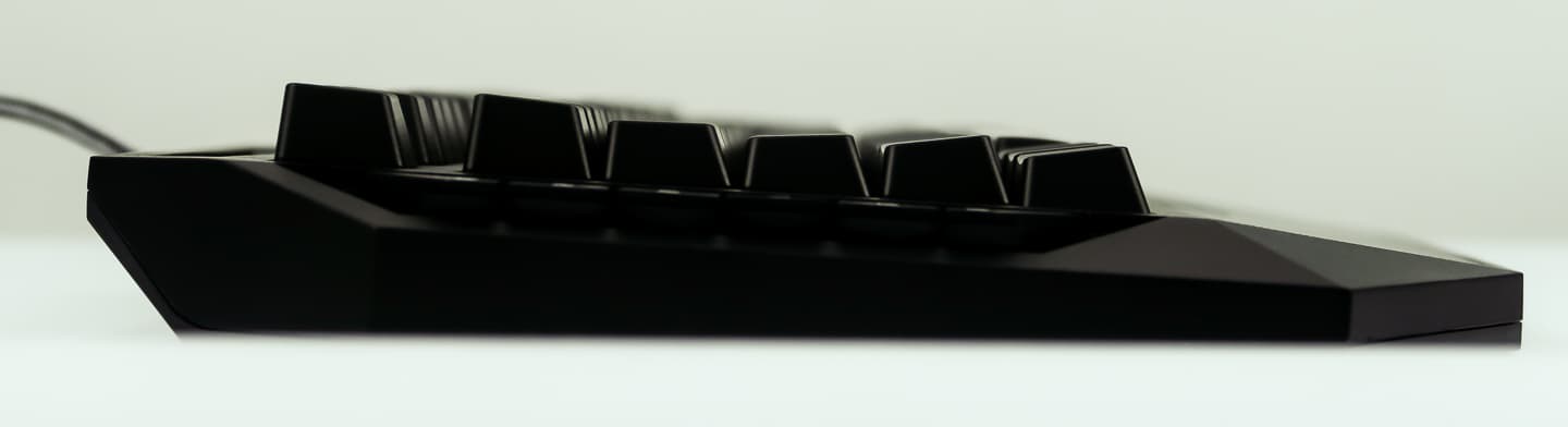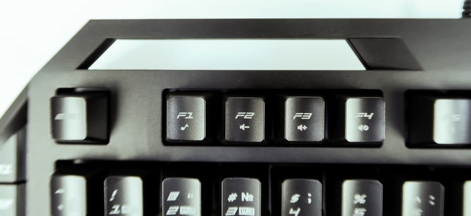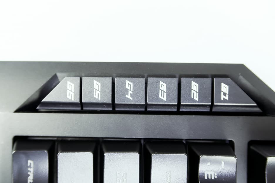 На левой грани клавиатуры находится 6 функциональных клавиш, на которые пользователь может назначить собственные макросы. Ход клавиш достаточно большой для того, чтобы игрок не нажал их случайно ребром ладони, однако достаточно большой размер позволит достаточно уверенно попадать по ним пальцем.