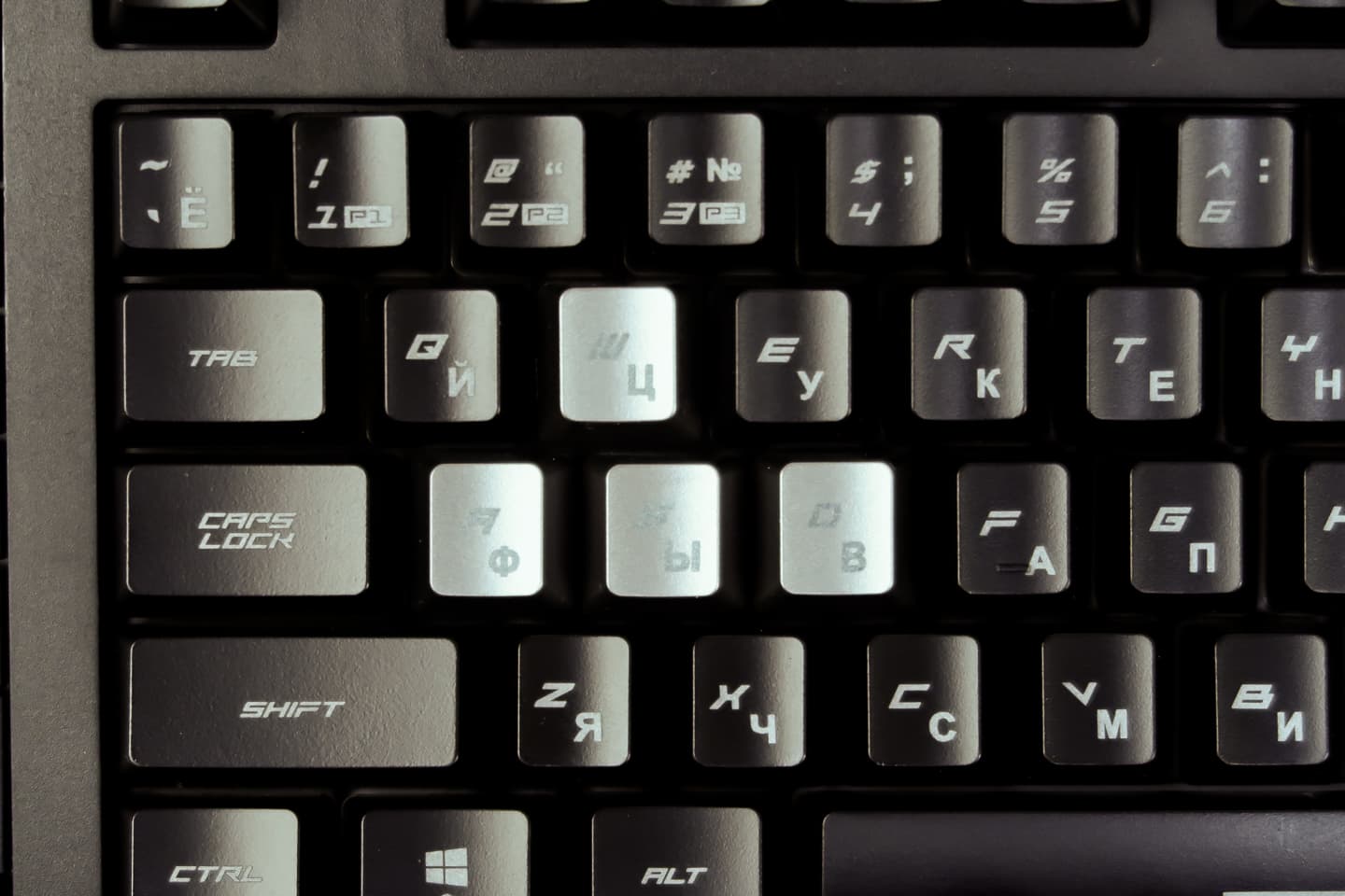 С помощью комплектных клавиш пользователь может выделить привычные игровые группы (WASD и стрелки) и повысить их "читаемость" на поверхности клавиатуры.
