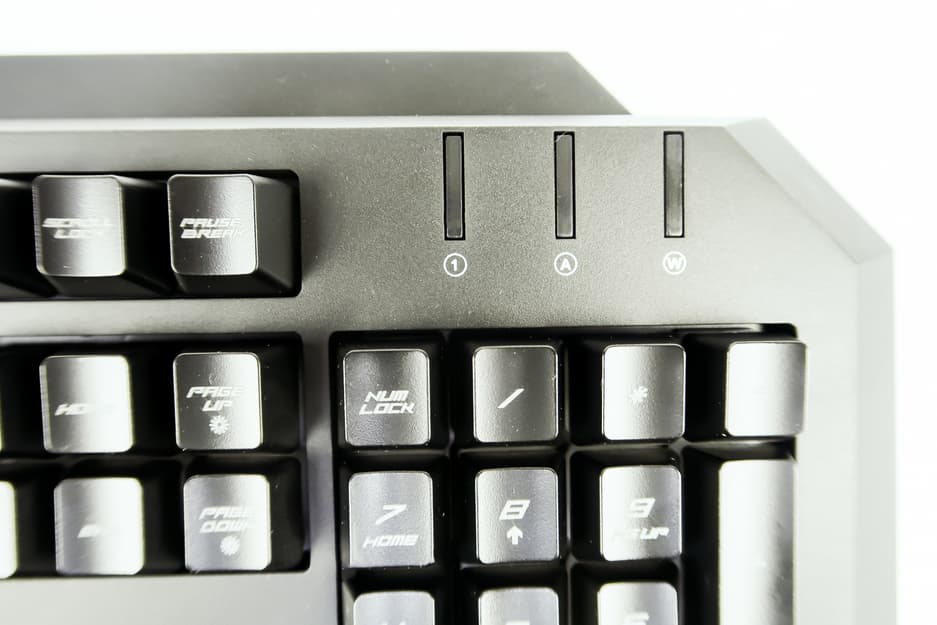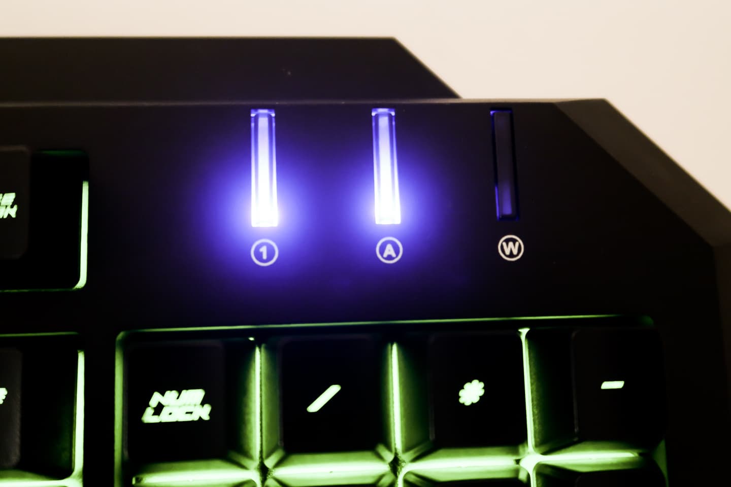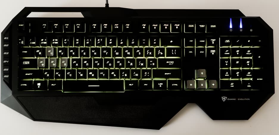 В верхней левой части клавиатуры находится стандартная группа индикаторов, разве что крайний левый индикатор показывает, включена ли блокировка клавиши Windows.