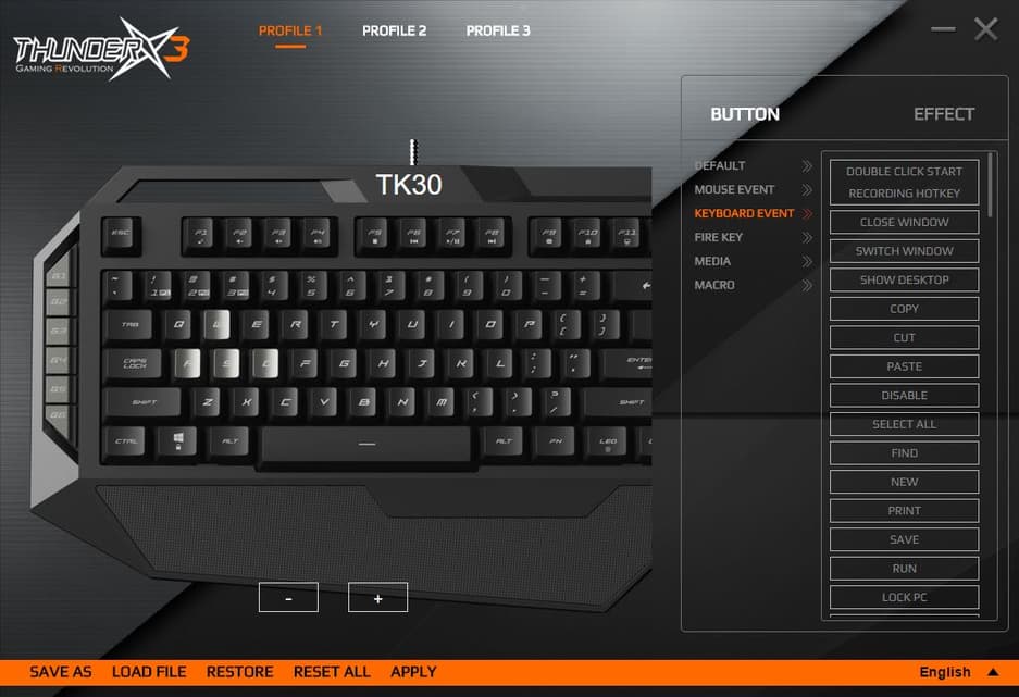 Для расширения возможностей клавиатуры её необходимо подключить к приложению ThunderX3 System, которое можно бесплатно скачать с официального сайта.
