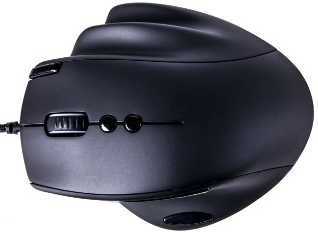 Остальные кнопки сосредоточены на левой грани. Сверху пара удобных и широких клавиш для навигации в браузерах. Чуть ниже — маленькая подсвечиваемая кнопка «снайперского режима», уменьшающая чувствительность во время нажатия. На наш взгляд, ее стоило бы сместить на миллиметр-другой назад. На подставке для большого пальца находится еще одна кнопка. Она защищена от случайных нажатий, поскольку требует для этого немалого давления. По умолчанию на нее назначено приглушение звука, что вполне уместно.
