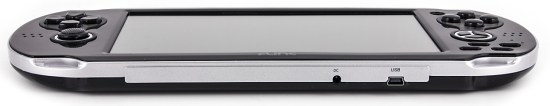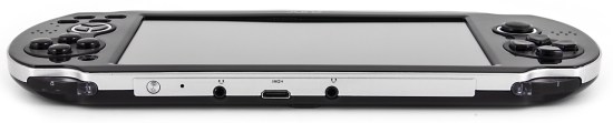 Вместо симметричного стика в кружок справа были вставлены три кнопки: Home, Menu и Esc. Под ними находятся еще четыре одинаковые клавиши: увеличения и уменьшения громкости, Start и Select. Завершают анфас щели динамика, а также индикаторы работы и зарядки.