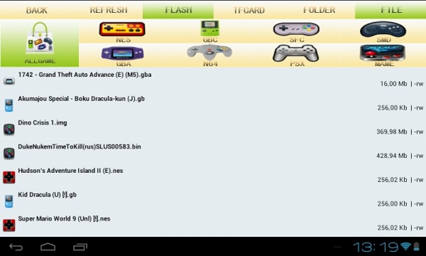 Поиграть на всех приставках без некоторых «танцев с бубном» нам не удалось. Играм Nintendo 64 необходимо присваивать расширение *.n64, играм для Sega Mega Drive — *.smd (файл игры выбирается из открывающегося эмулятора). Эмулятор MAME не заработал вообще. Несмотря на то, что в настройках присутствует опция «Скрыть статусную панель», панель не скрывается. Зато вы никогда не забудете о времени, увлекшись игрой.