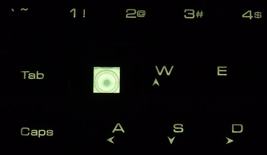 Нажатие кнопки управления подсветкой в сочетании с Fn активирует пульсирующий режим подсветки с последовательным перебором всех цветов и цикличным изменением яркости. Скорость пульсирования регулируется сочетаниями Fn + «-» и Fn + «+», соответствующие дополнительные пиктограммы нанесены на кнопки.