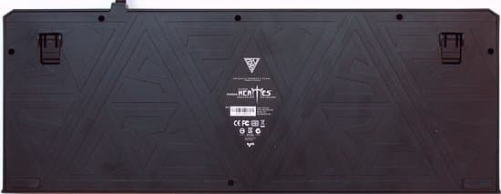 Перевернув клавиатуру (отметим оригинальной оформление обратной стороны, никак не влияющее на использование устройства, но свидетельствующее о внимании производителя к мелочам), можно обнаружить две резиновые ножки предотвращающие скольжение и выдвигающиеся вперед стойки для увеличения угла наклона в таком же количестве.