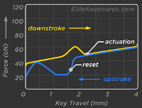 Эти переключатели обеспечивают выраженное тактильное ощущение и сравнимую с мембранными клавиатурами силу нажатия, из-за чего считаются максимально подходящими для набора текстов. Кроме того, они имеют характерный щелчок (клик), за что особенно ценятся любителями теплового лампового этого звука при нажатии.