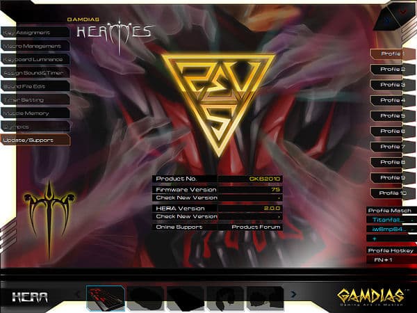 Для всей своей периферии GAMDIAS использует одну программу под названием HERA (еще одна отсылка к древнегреческой мифологии), при тестировании использовалась версия 2.0.0.