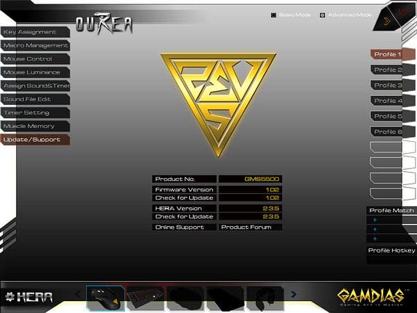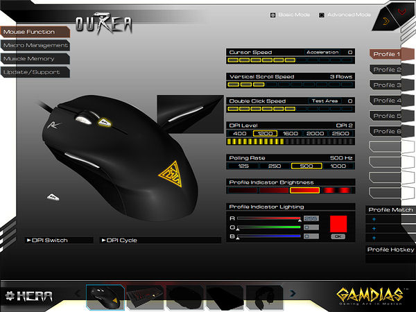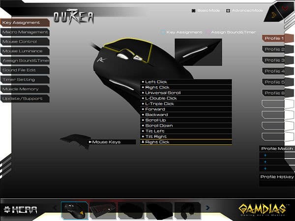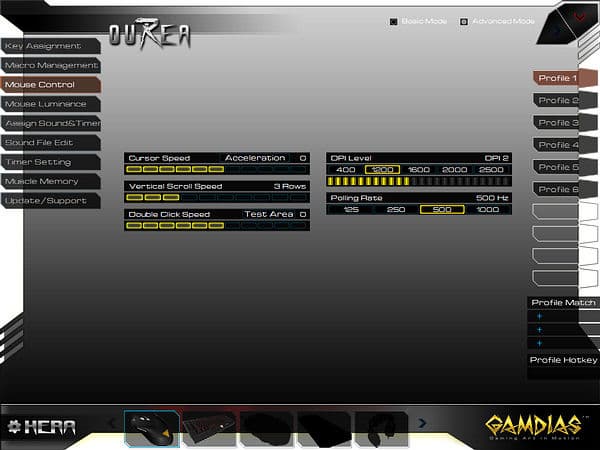 Функций «Consecutive Attack» и «Sensitivity Tuning», замеченных при тестировании GAMDIAS Apollo Extension Optical, в доступных для GAMDIAS Ourea Optical настройках не обнаружено.