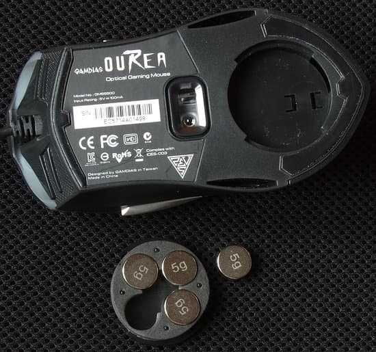 Вес мыши составляет 140 г и может быть увеличен путем добавления внутрь специального отсека в задней части от одного до четырех грузиков по 5 г каждый.
